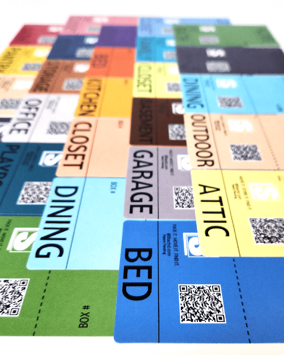 STACHD has been a game-changer for my organizing business. Many of our clients are moving or downsizing and using STACHD labels guarantees a smooth transition. The color-coded labels with matching door hangers ensure the boxes end up in the correct room. The QR code on each label and the STACHD app help us stay organized while packing and help the client find what they need!